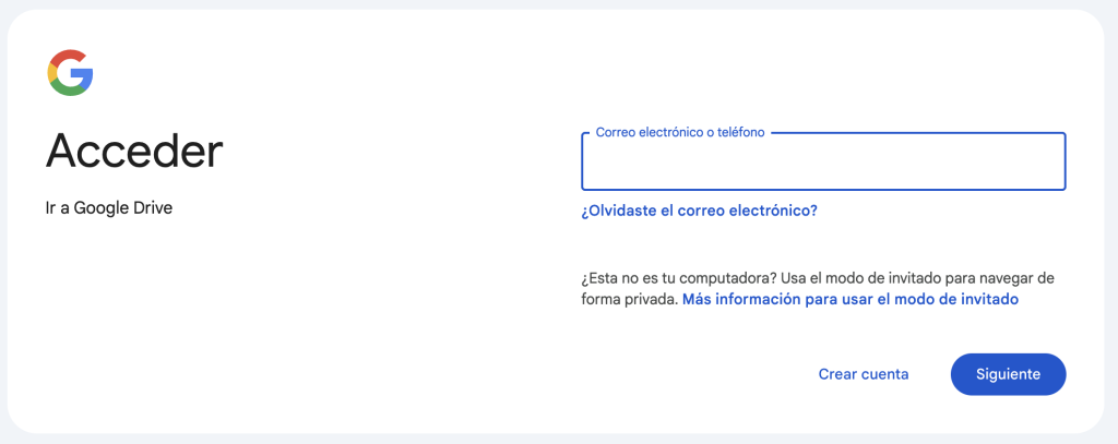 Ve a Google Drive e inicia sesión con tu cuenta de Google.