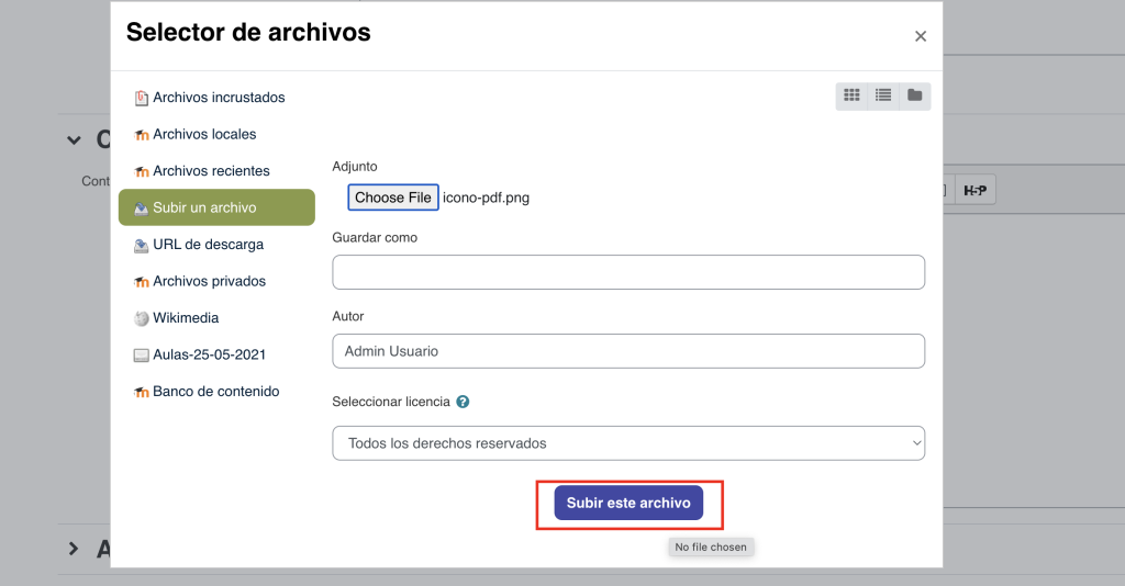 Una vez seleccionada, haz clic en “Subir este archivo”.