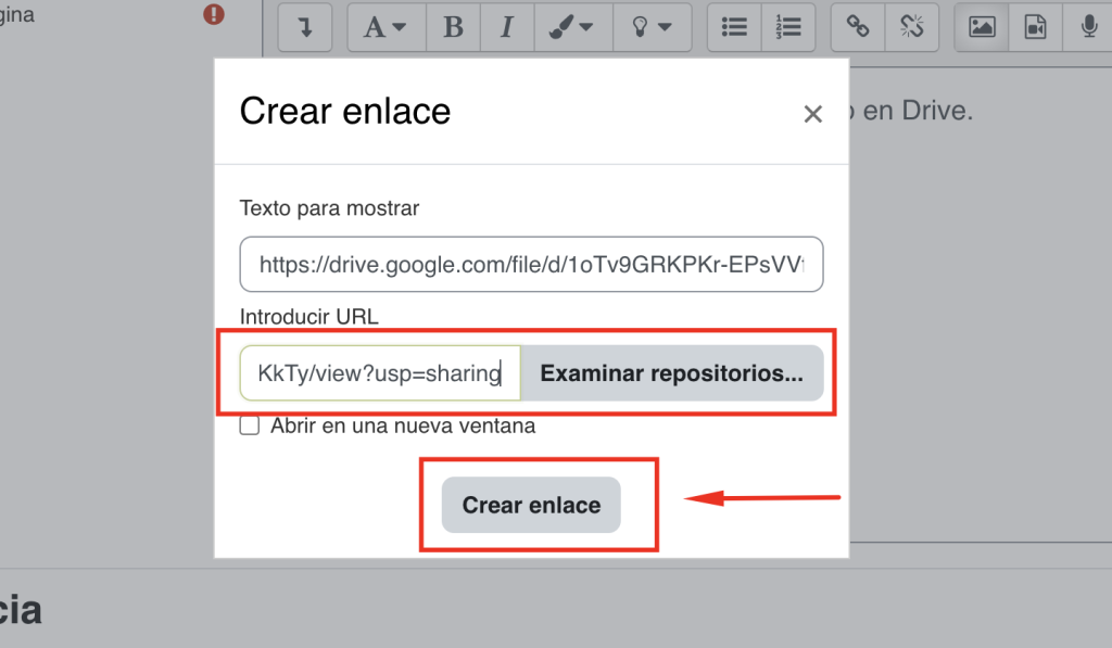 Haz clic en “Crear enlace”.