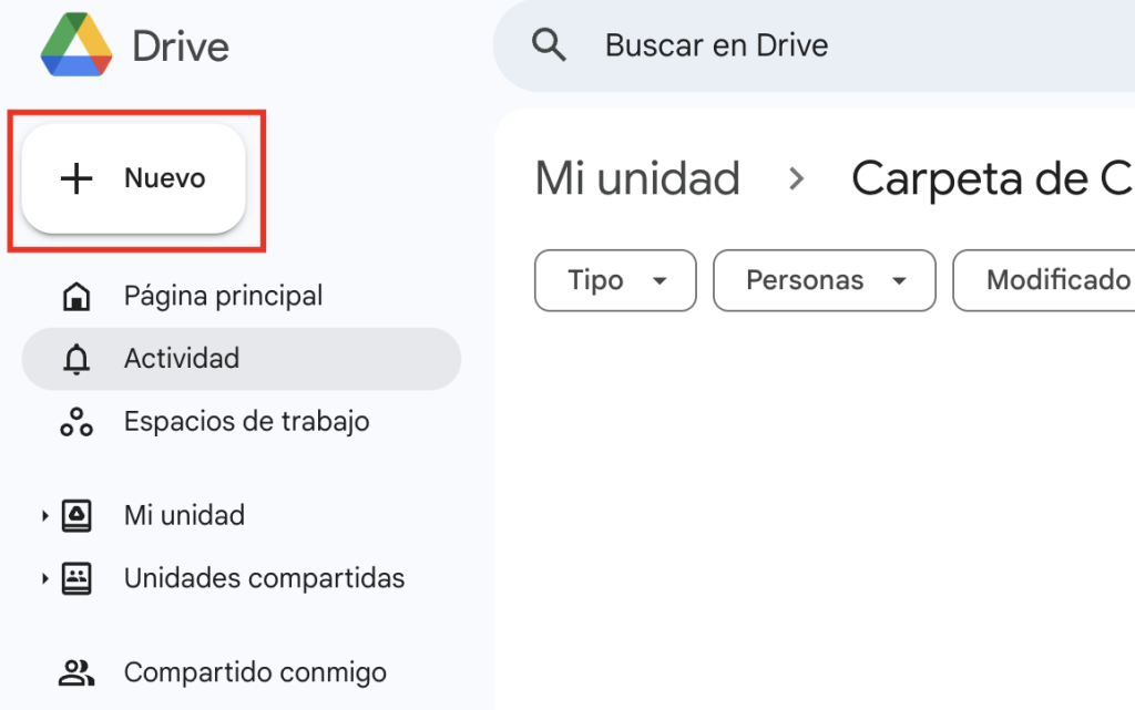 Haz clic en el botón “Nuevo” en la parte superior izquierda.