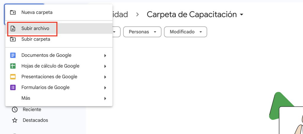 Selecciona “Subir archivo”.